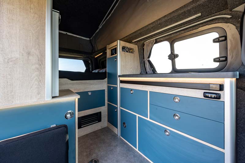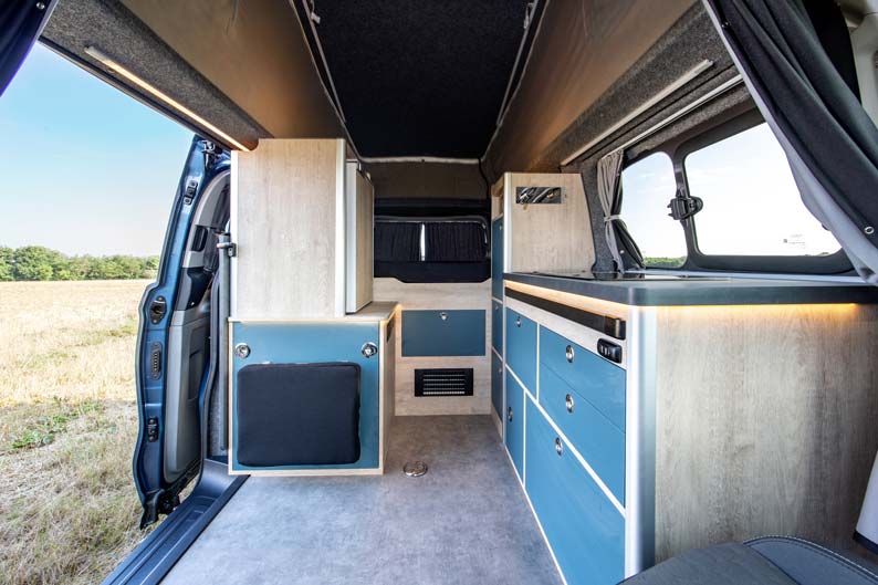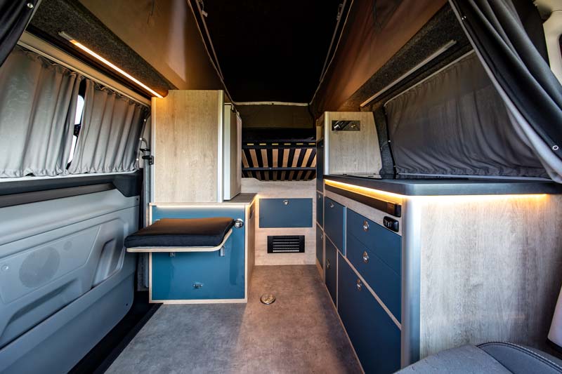 Le STYLEVAN EQUINOX II est le van aménagé parfait pour vivre de grandes expéditions en duo. Si votre objectif est partir très loin et in fine longtemps, alors ne cherchez pas plus loin vous avez trouvé votre modèle. Bien que les vans proposent souvent 4 places et plus, ils restent le plus souvent adaptés pour 2 personnes quand ils sont utilisés pour la vadrouille. Ce modèle combine fonctionnalité (avec son grand salon et sa cuisine attenante), confort (avec son vrai lit permanent qui élimine les manipulations quotidiennes) et autonomie maximum avec sa douche intérieure et son WC fixe. Vraiment, ce van fait des heureux !